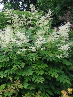 ![]() ARUNCUS DIOICUS Nom commun : Barbe de bouc. Description: Plante vivace imposante aux grandes inflorescences plumeuses composées de minuscules fleurs blanc crème. Sol: Demande un sol humifère, ne s'assèchant pas. Tolère un sol argileux, même mal drainé. |